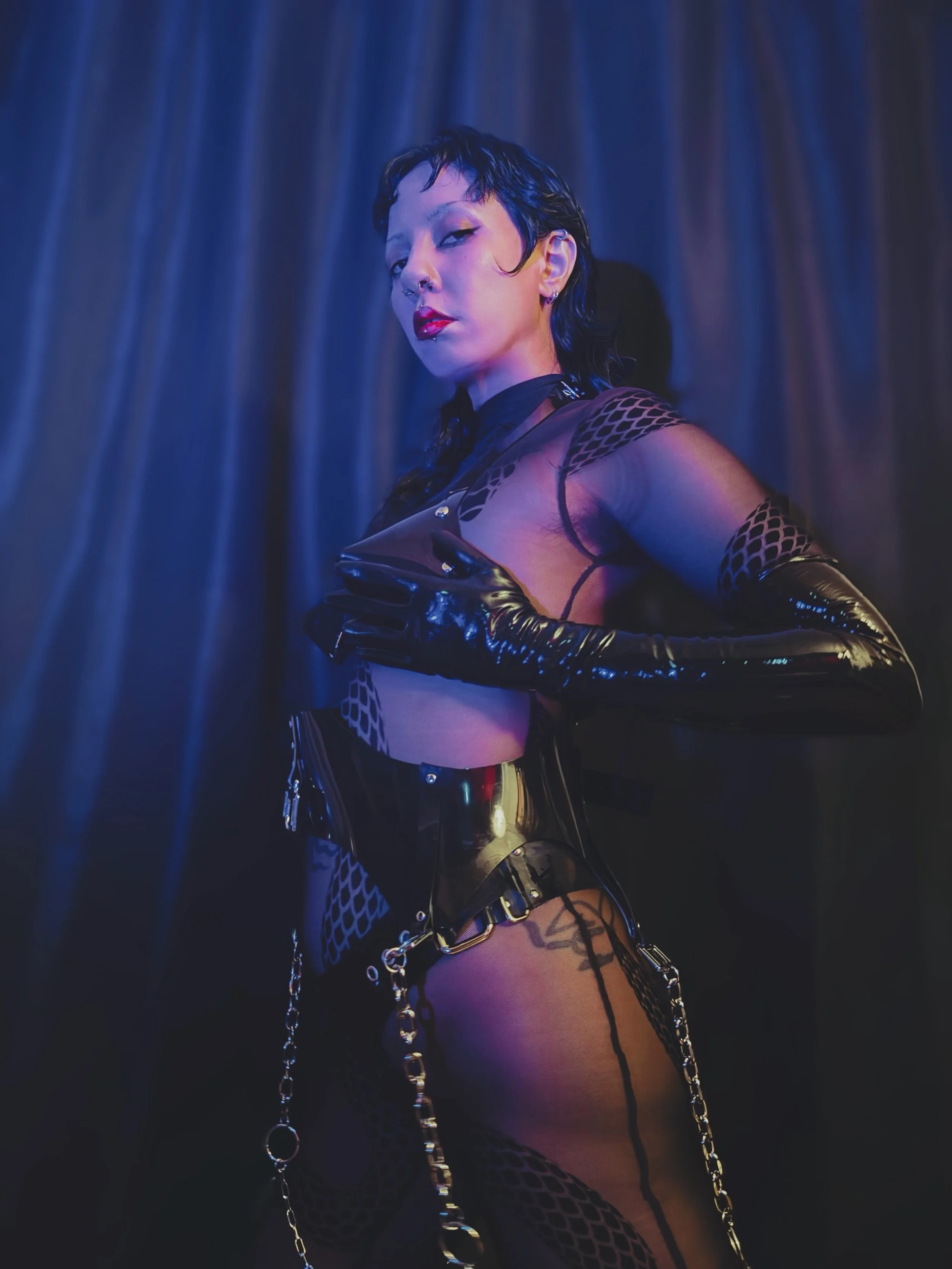A Professional Dominatrix based in los Angeles. She exudes confidence and authority, commanding the attention and obedience of those who submit to Her. Through subtle cues and entrancing gestures, She orchestrates a labyrinth of sensations, binding Her subjects to Her will. She has a passion for the occult and incorporates that same magic and intention into every session, turning every submissive into a tool for her to mold and transmute as she pleases. she has experience implementing discipline with proper intention, using her sensual prowess to take control of her environment.